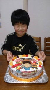 お誕生日おめでとうございました♪3回目もご利用いただきまして、誠にありがとうございます。妖怪ウォッチのケーキ、お坊ちゃまに気に入っていただき、とても嬉しく思います。耳の特徴のところも合格点をいただいたようで、安心致しました~^^お坊ちゃまの笑顔という最高のプレゼントをいただいき、スタッフ一同ガッツポーズで喜んでおります。お坊ちゃまの興味の変化もまた、ご成長の証ですね^^どこまでもご一緒させていただきたいと思います。来年も楽しいオーダーお待ちしております。メールありがとうございました!