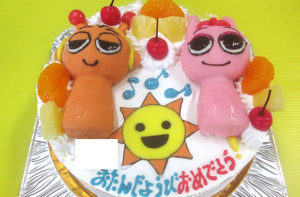 スプランキーのオレンとピンキ立体とミスターサンイラストケーキ