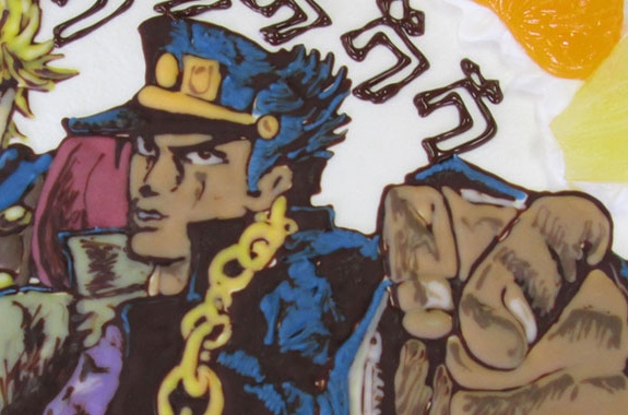 ジョジョの軌跡な冒険ケーキのご注文いただきました。 ケーキの大きさは18cm、生クリームケーキです。 イラスト2個のご注文は、18cm以上で制作可能です。