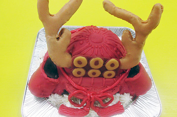 戦国武将「真田信繁(幸村)」の兜の立体ケーキのご注文をいただきました。 ケーキの大きさは18cm、生クリームケーキです。
